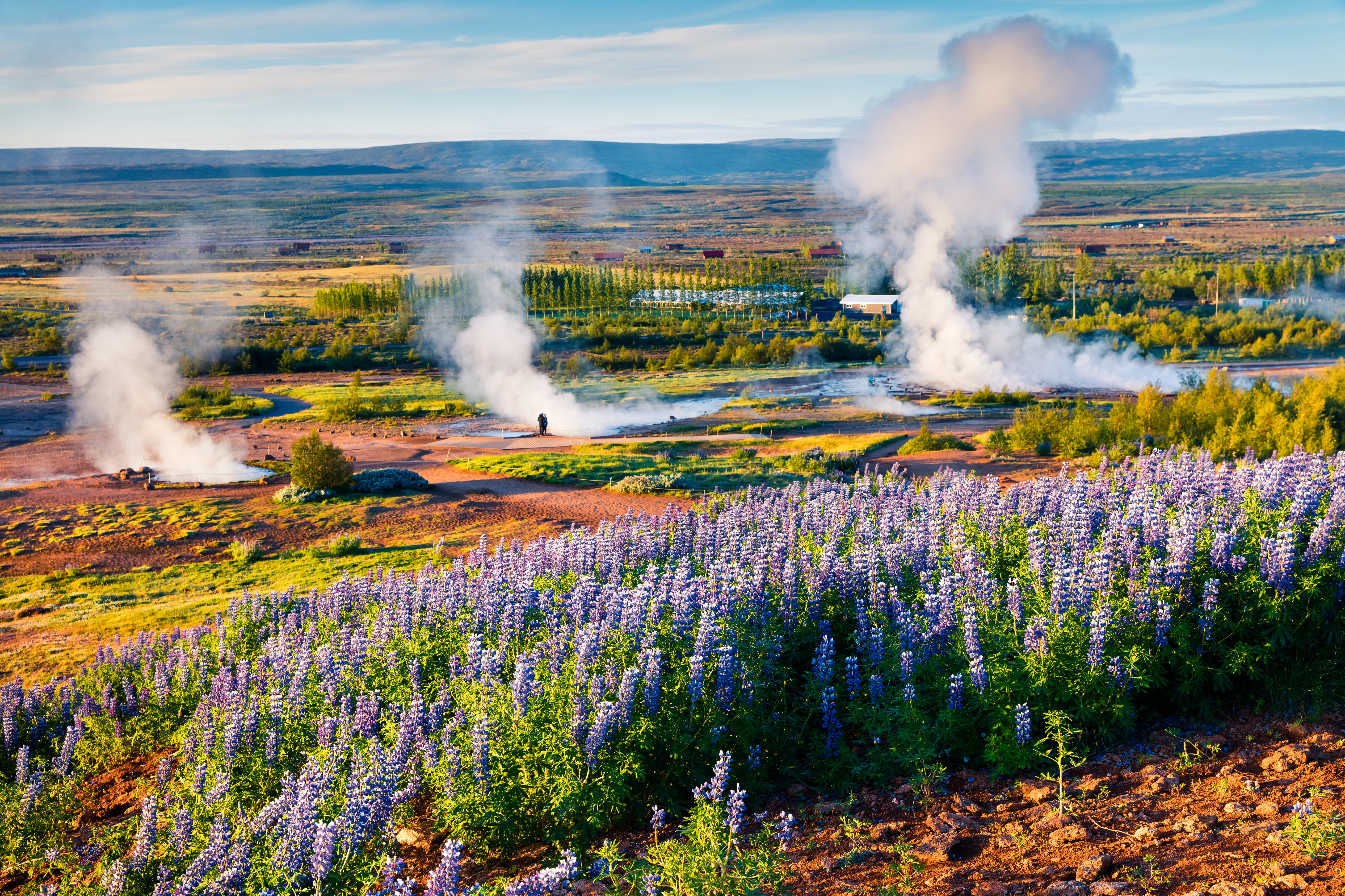 De zomer in IJsland is misschien wel net zo bijzonder als de winter op het eiland. In juni en juli gaat de zon vrijwel niet onder en kun je dus zelfs ‘s nachts op pad, mocht je niet al te veel slaap nodig hebben. De beroemde lupine (paarse bloem) bloeit volop in mei/juni en maakt het prachtige landschap van IJsland waar mogelijk nog mooier. Je zult ze zien bloeien zo ver je kunt kijken. In de zomer zijn alle wegen open, zelfs die in het binnenland. Wil je het binnenland in tijdens je singlereis, huur dan een 4x4. De overige (verharde) wegen kun je in de zomer ook prima met een normale auto op.